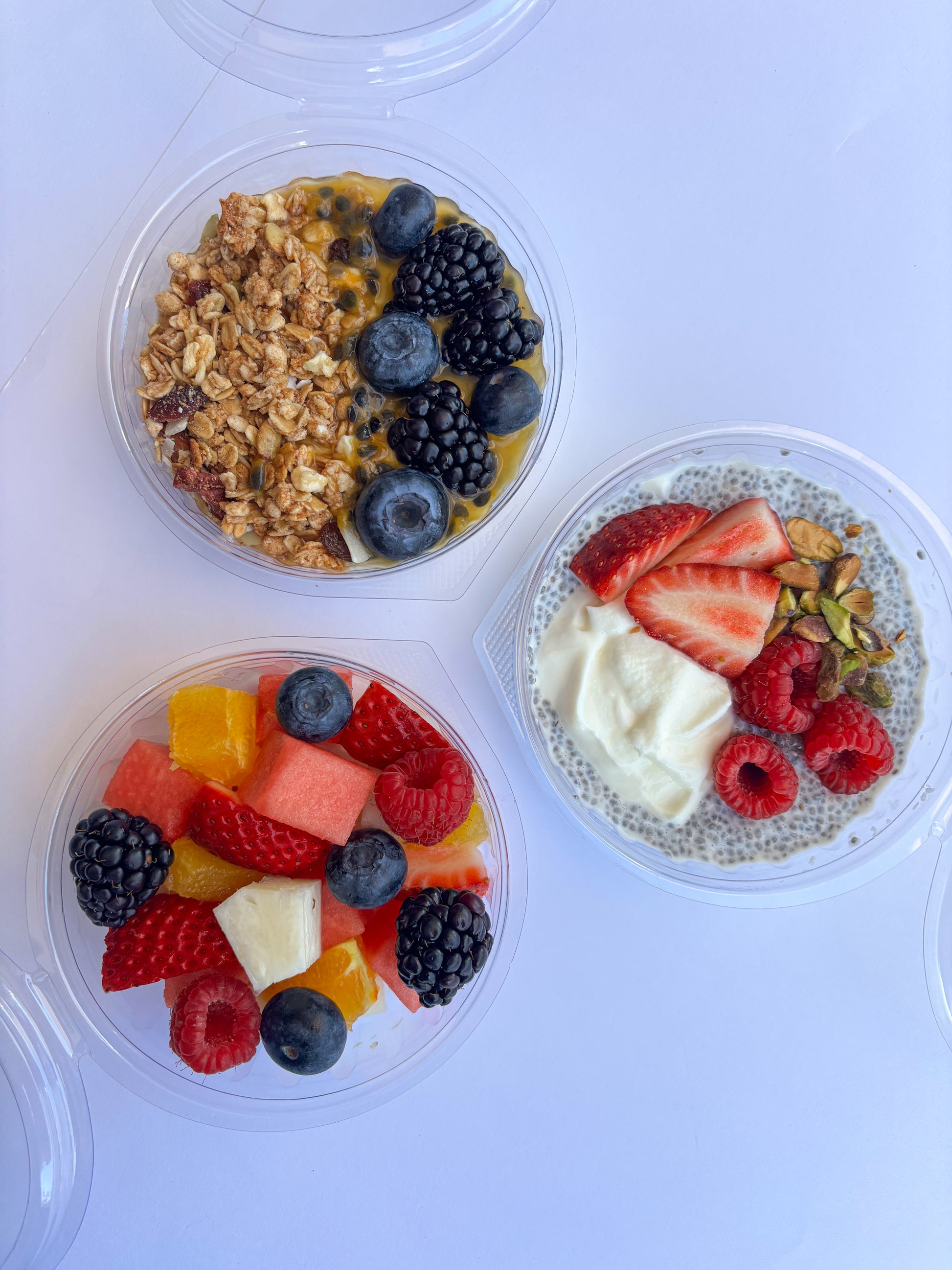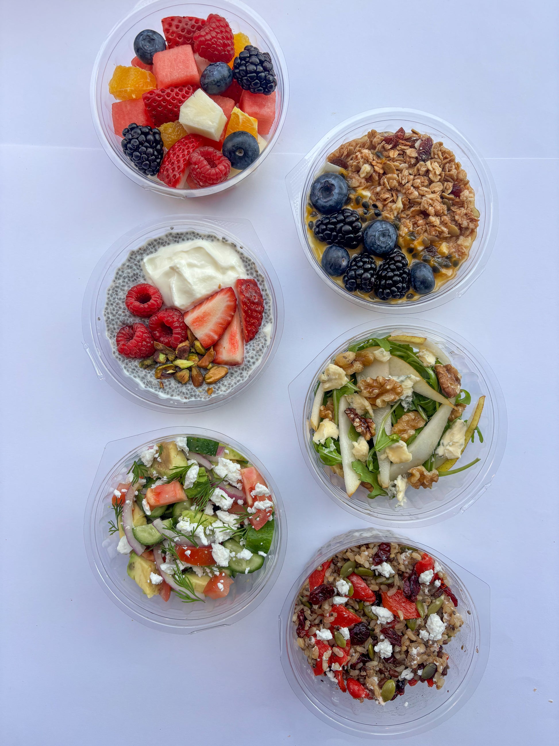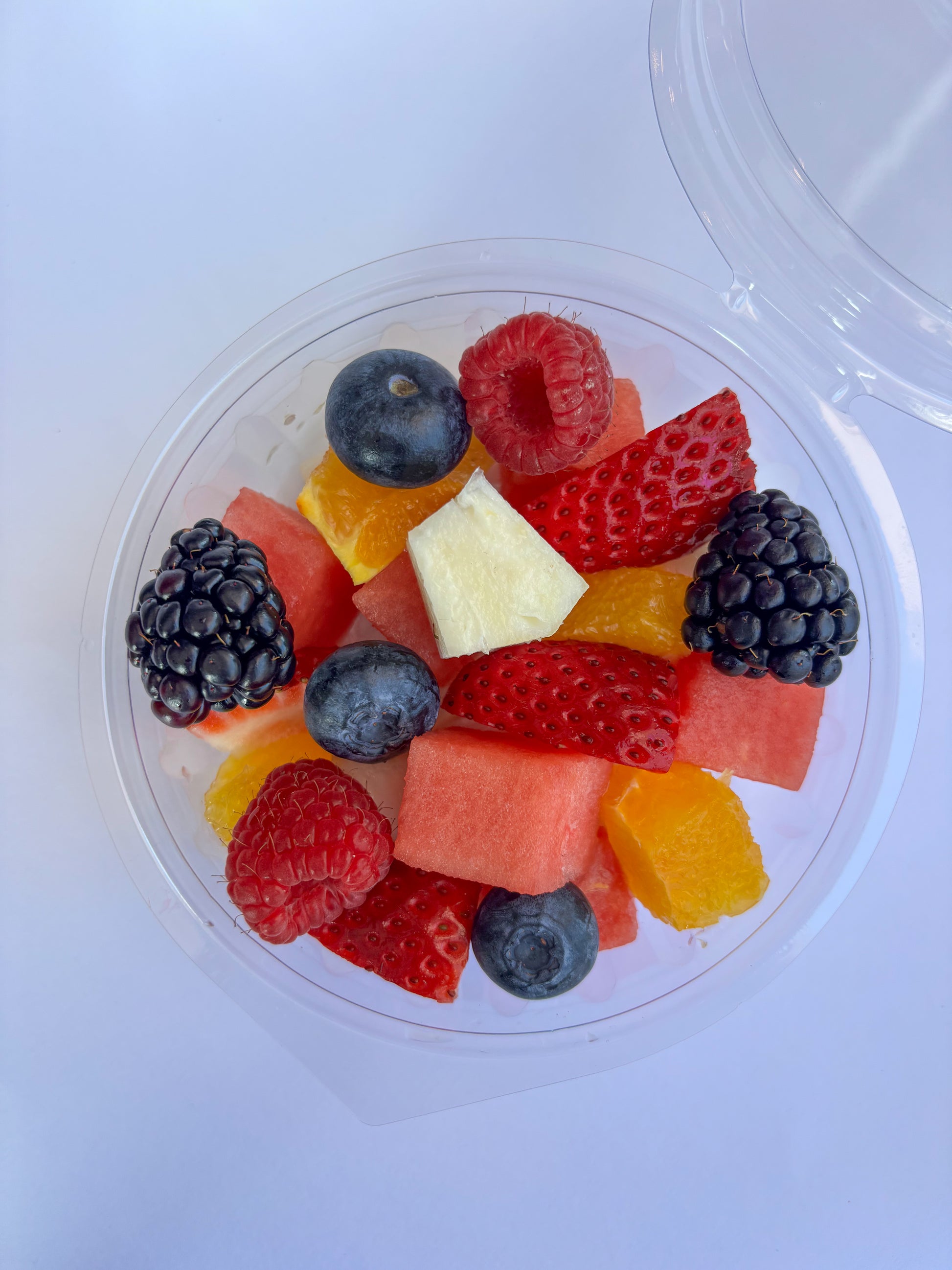 A mix of freshly cut, seasonal fruit. A refreshing and healthy option for breakfast or alongside lunch.