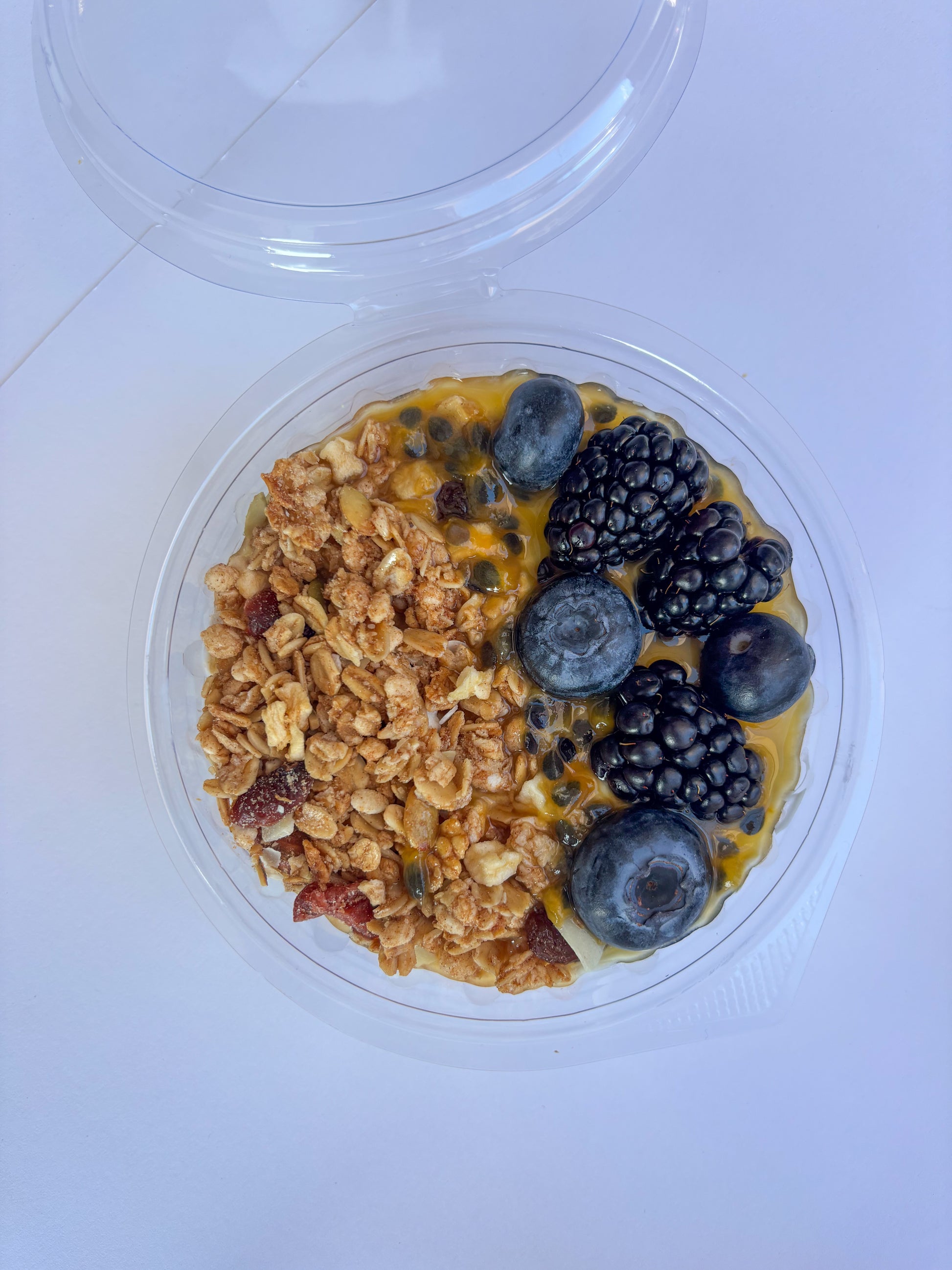 Sweet & creamy greek yoghurt layered with crunchy nut granola, passionfruit and fresh seasonal fruit. Single serve portion.